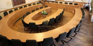 Полукруглые, радиусные, круглые, овальные столы без острых углов способствуют созданию спокойной атмосферы во время заседаний и мероприятий, настраивают на позитив, беседа становится более непринужденной и доверительной.